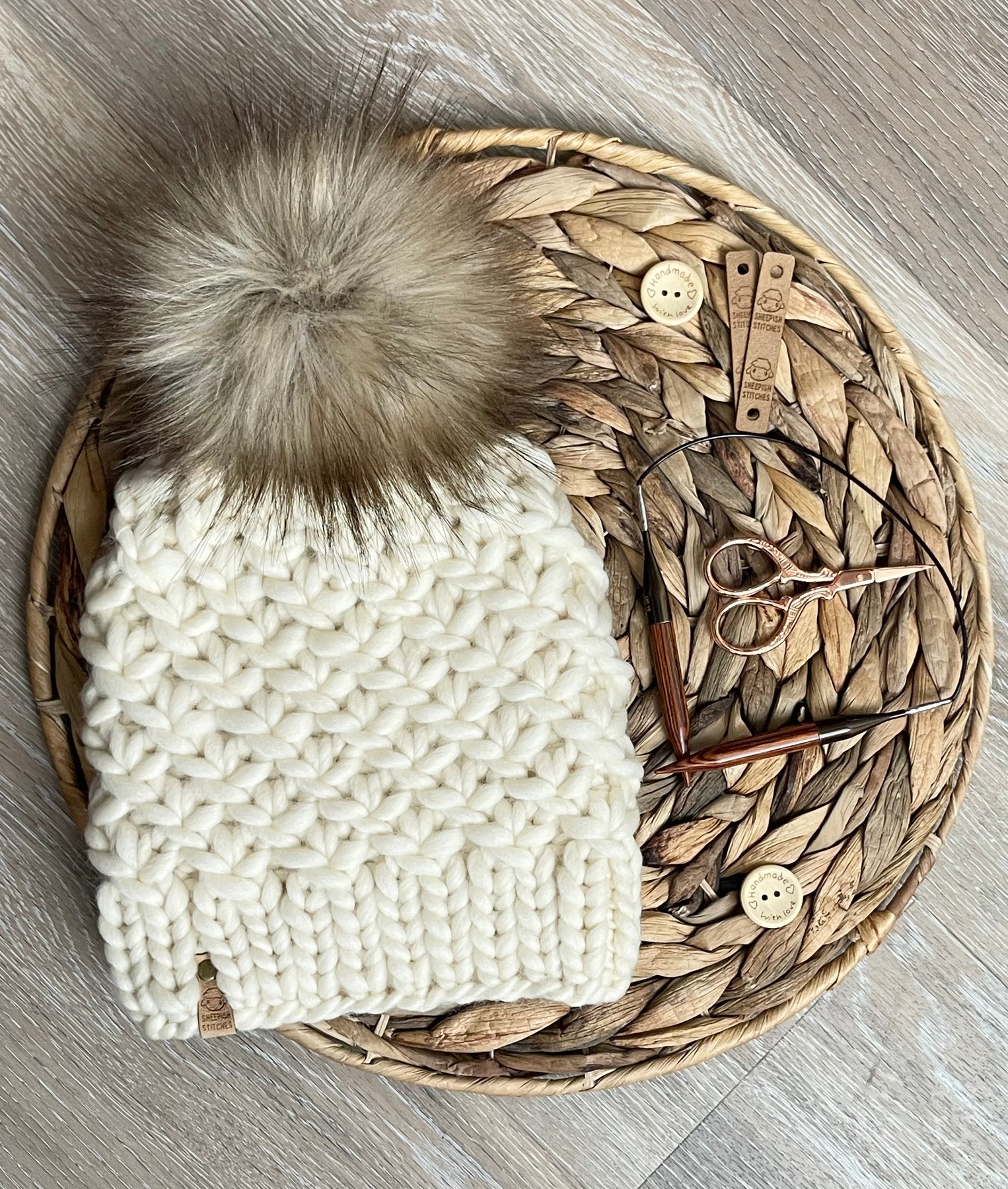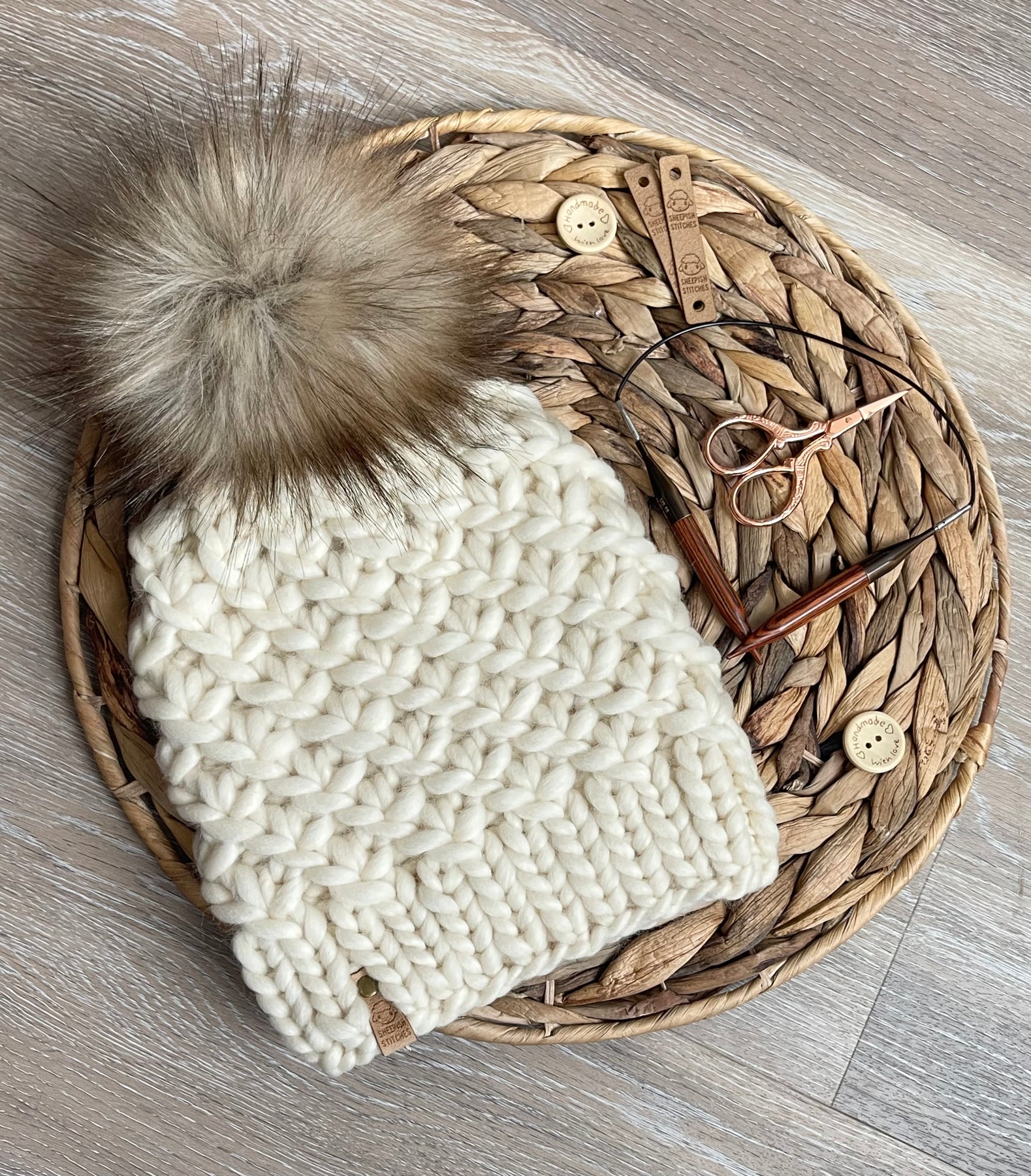 - Pom poms are handmade by me using cruelty-free faux fur fabric.